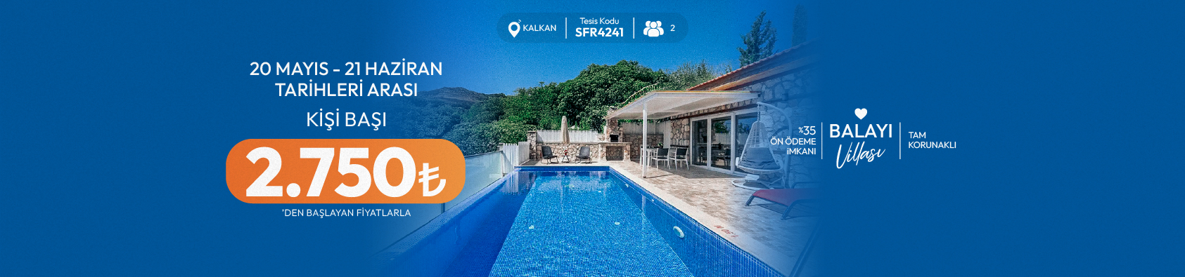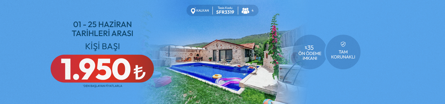 Antalya Kalkan İslamlar Mevkii 4 Kişilik Korunaklı Villa Kuzey